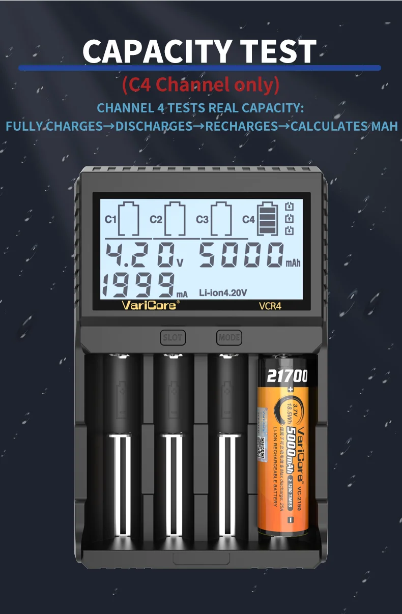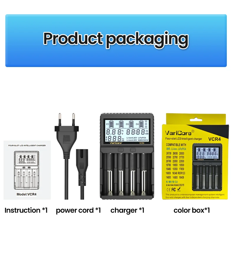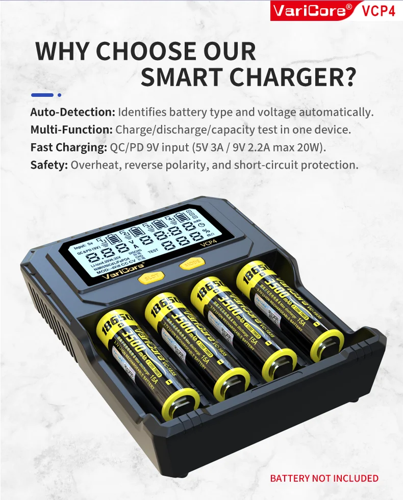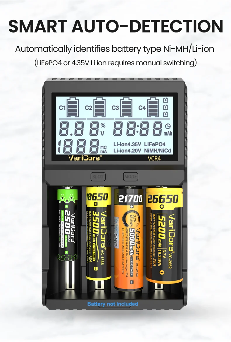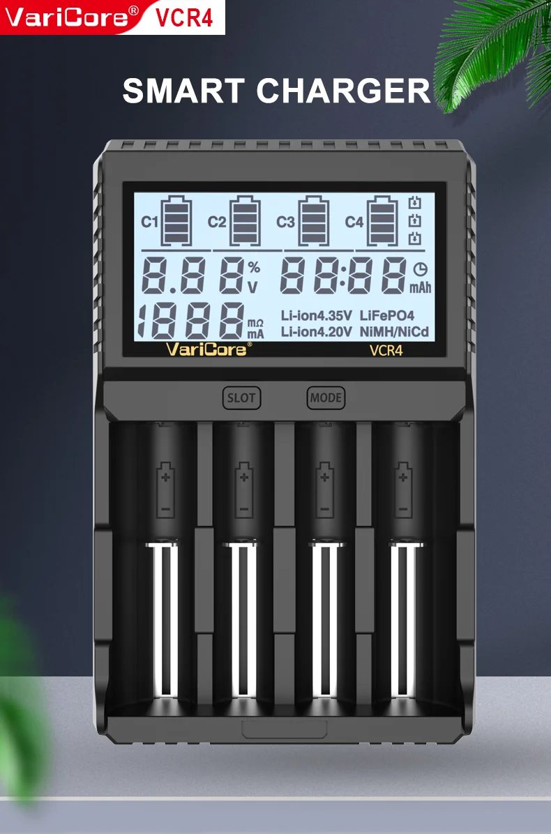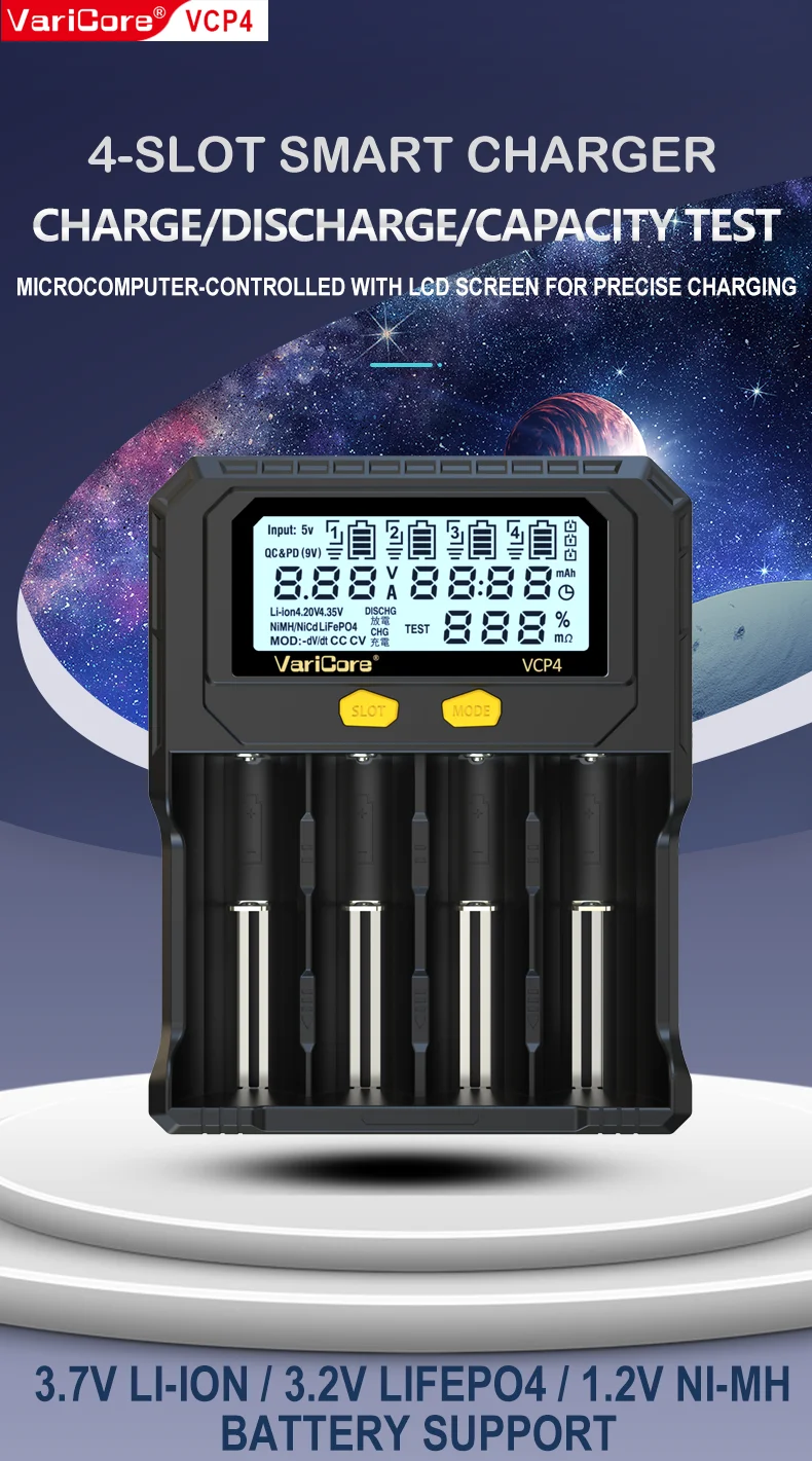 VCQ4 TC2 R4 Intelligent Battery Charger Portable for 3.7V Lithium 18650 26650 21700 18500 18350 1.2V NI-MH Ni-Cd AA AAA