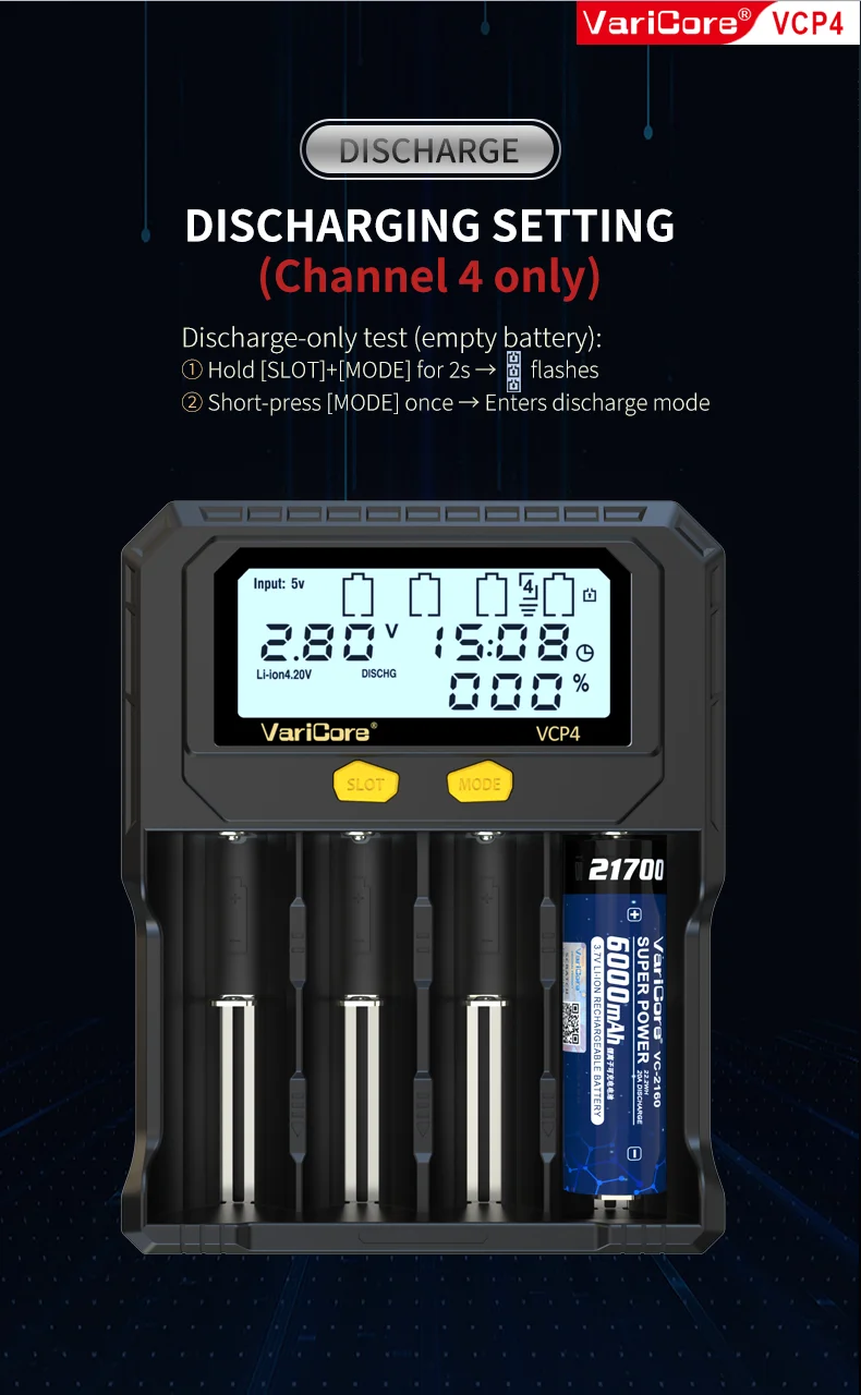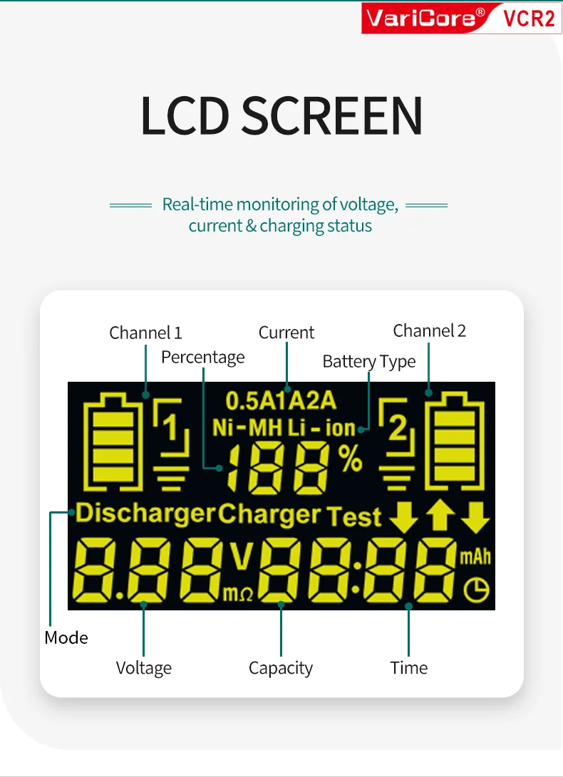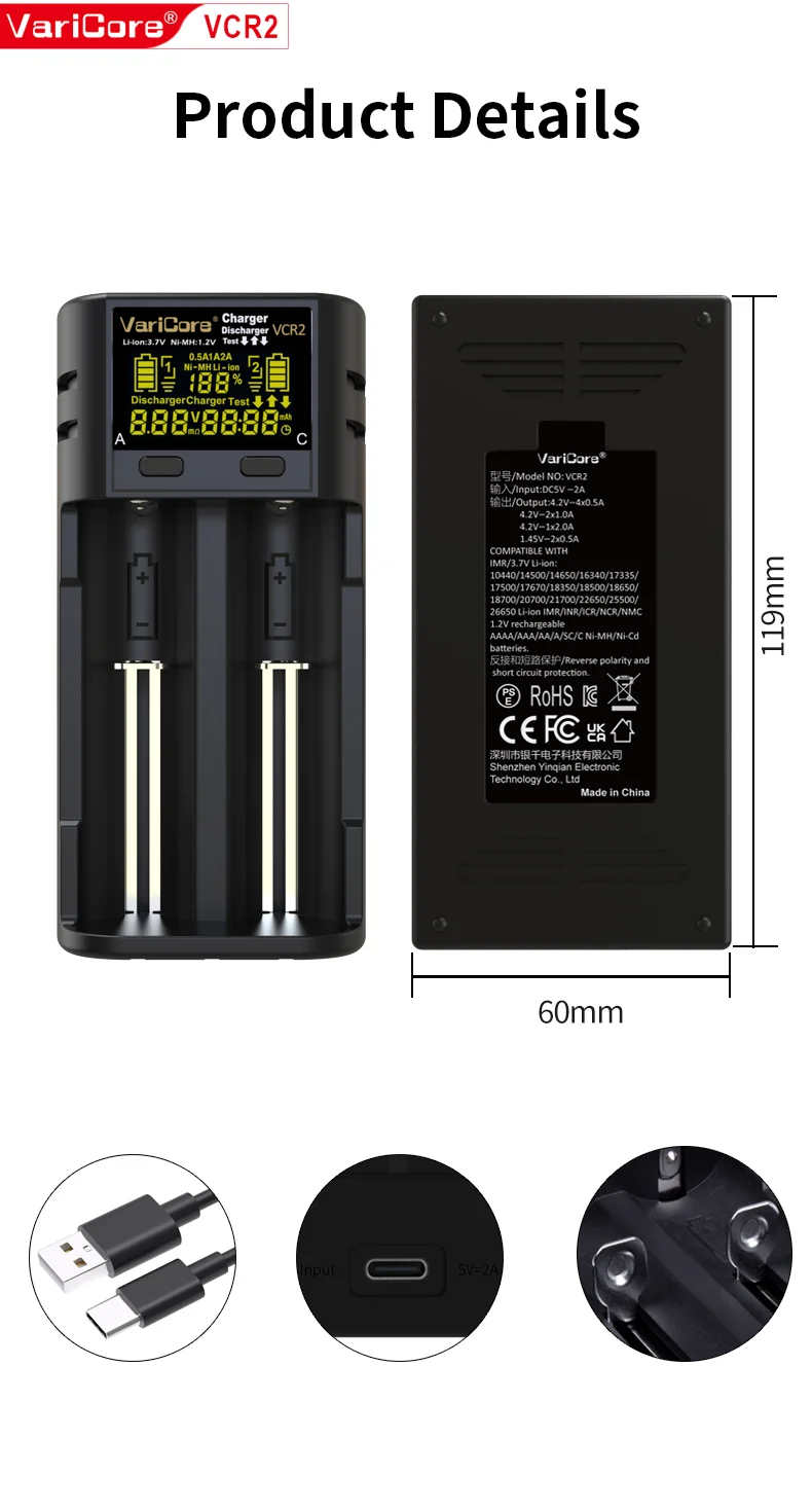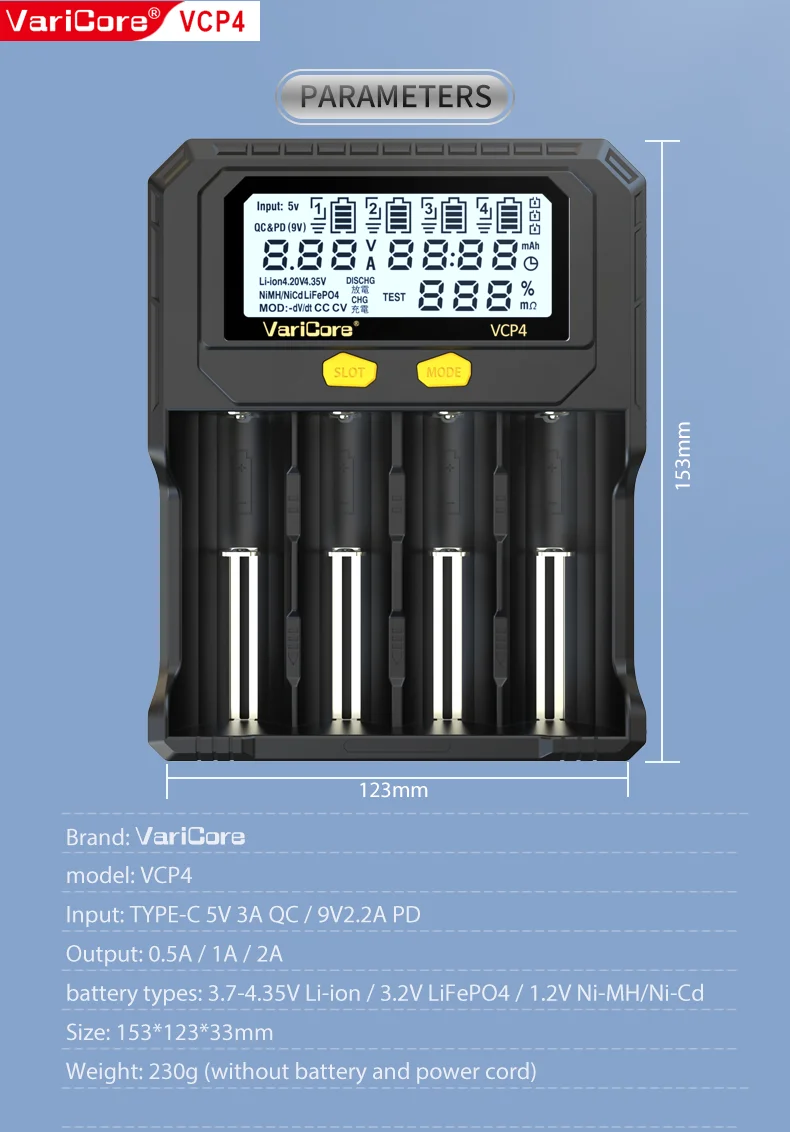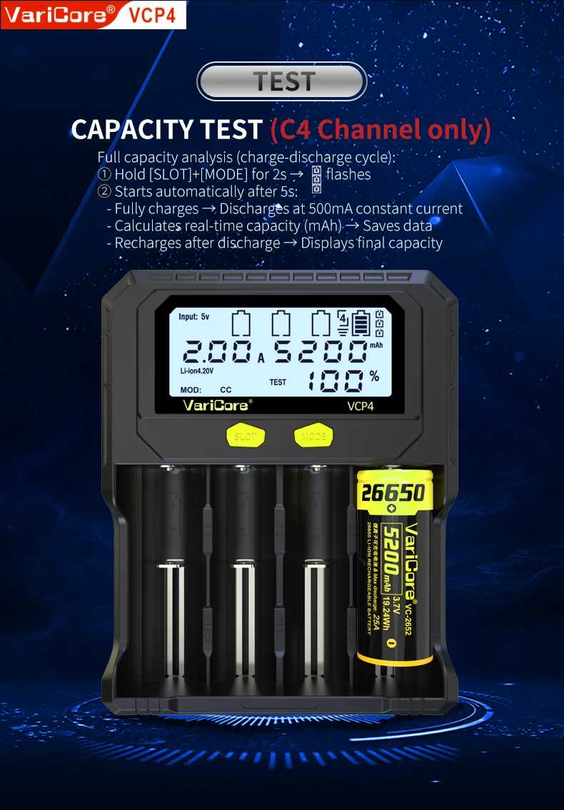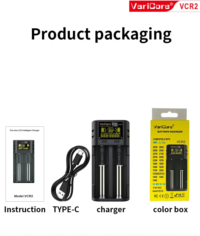 VCQ4 TC2 R4 Intelligent Battery Charger Portable for 3.7V Lithium 18650 26650 21700 18500 18350 1.2V NI-MH Ni-Cd AA AAA