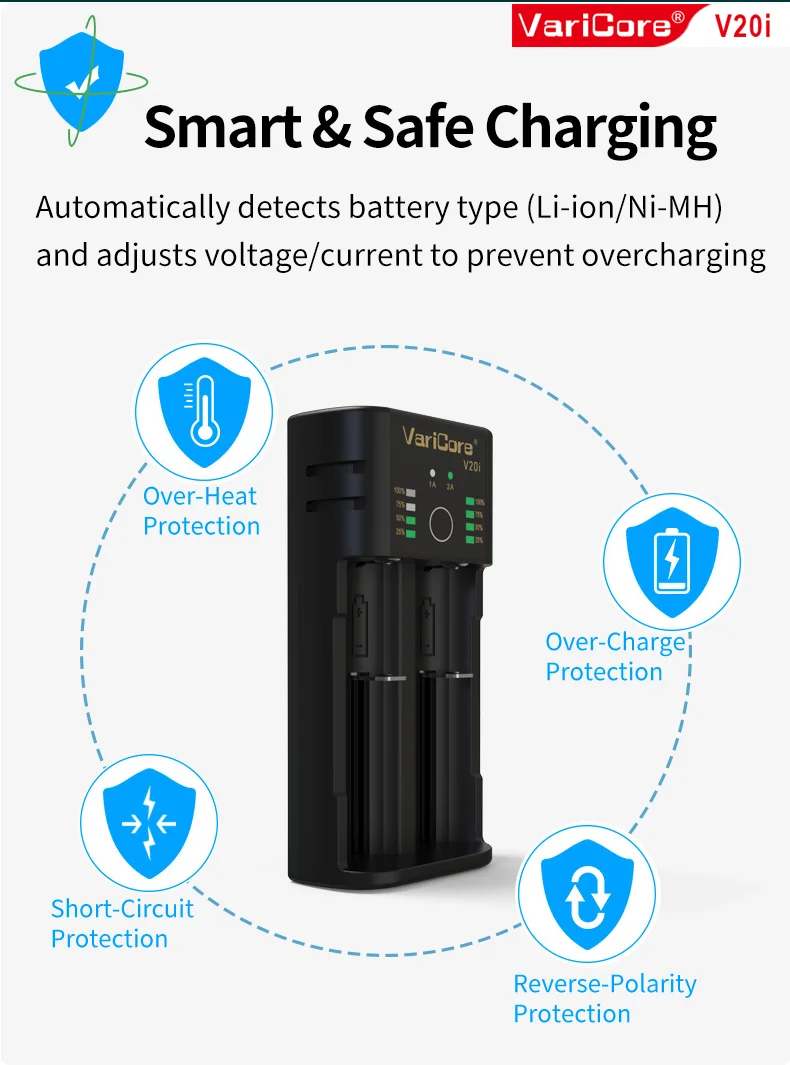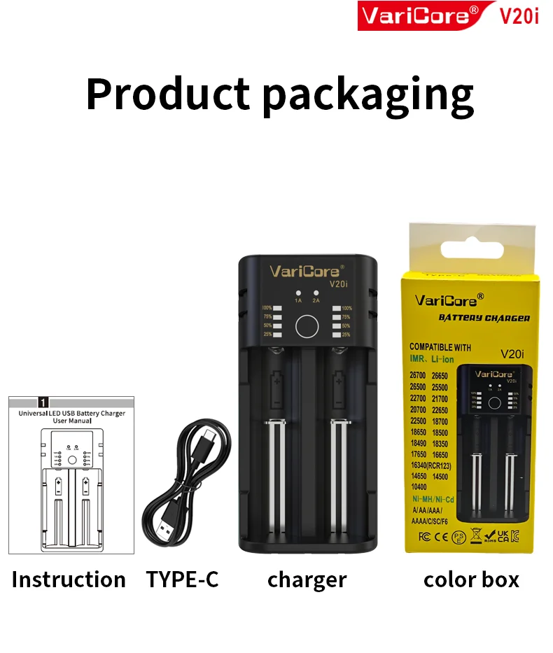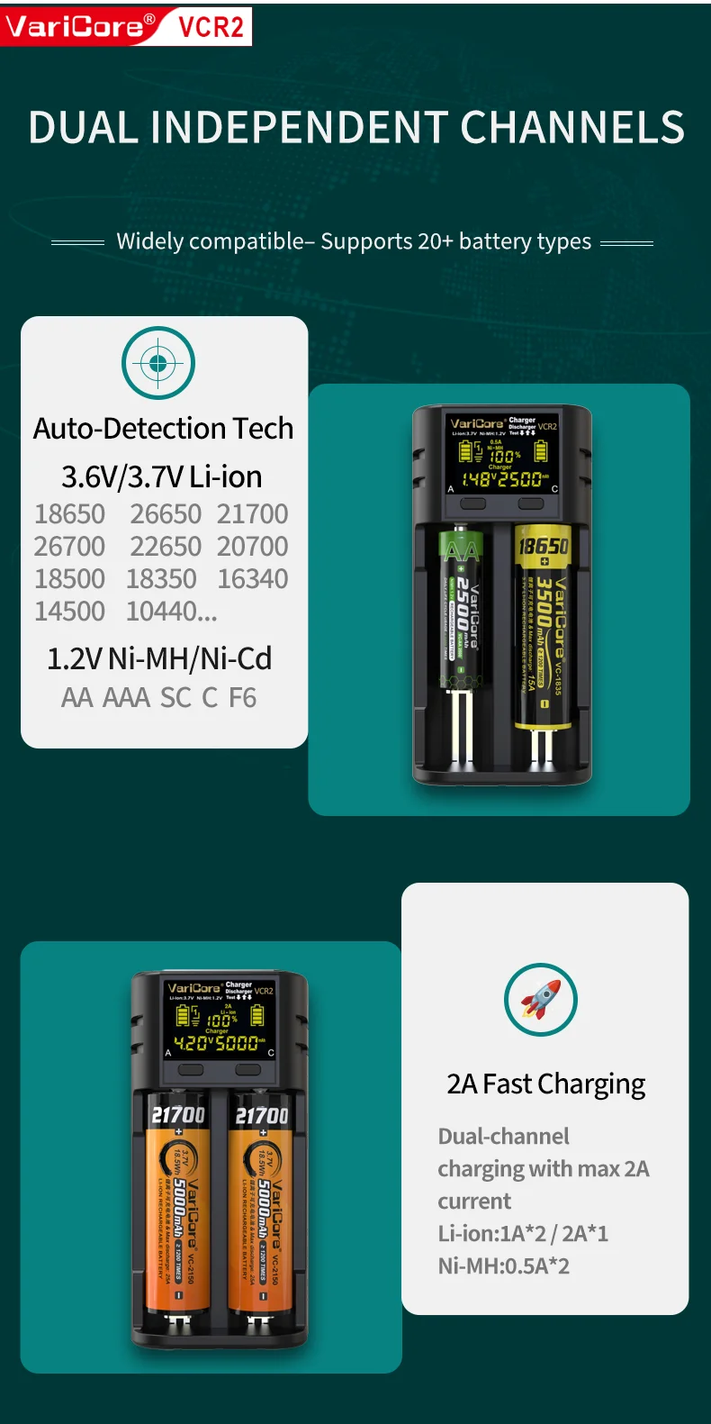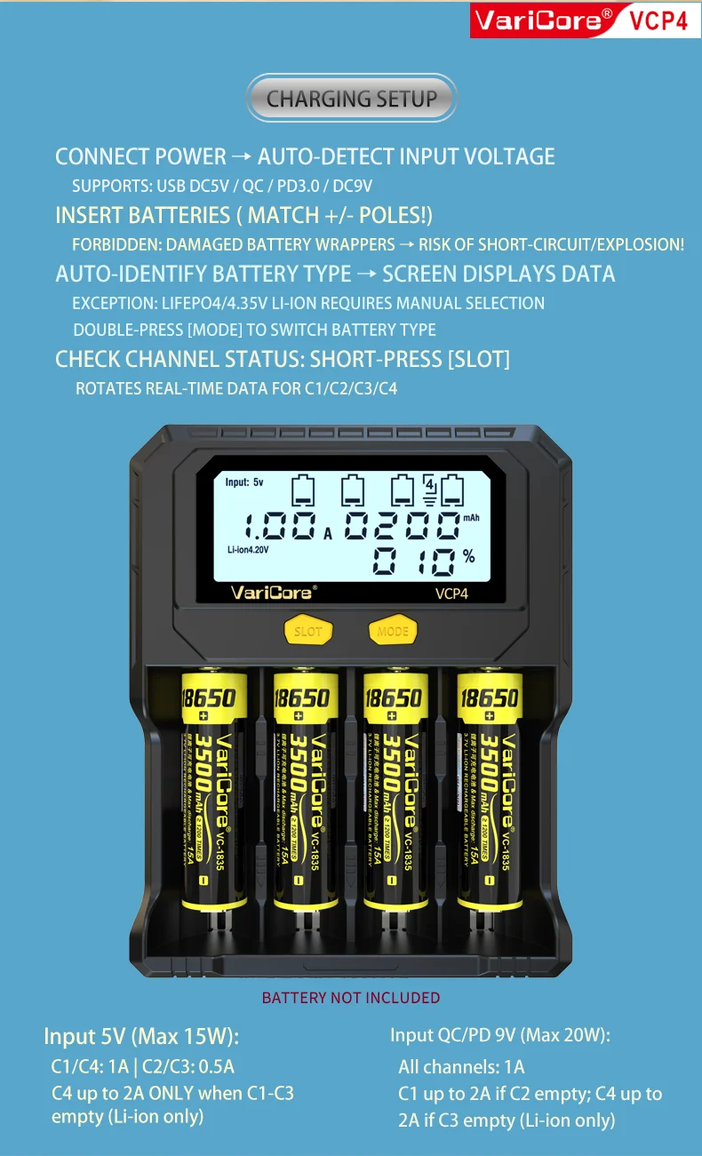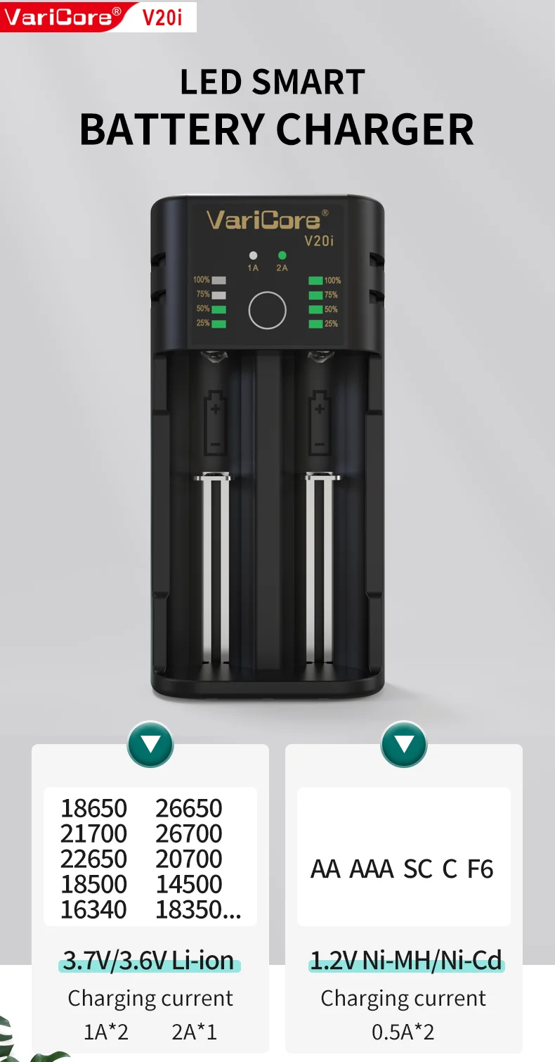 VCQ4 TC2 R4 Intelligent Battery Charger Portable for 3.7V Lithium 18650 26650 21700 18500 18350 1.2V NI-MH Ni-Cd AA AAA