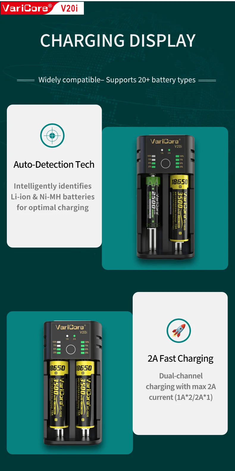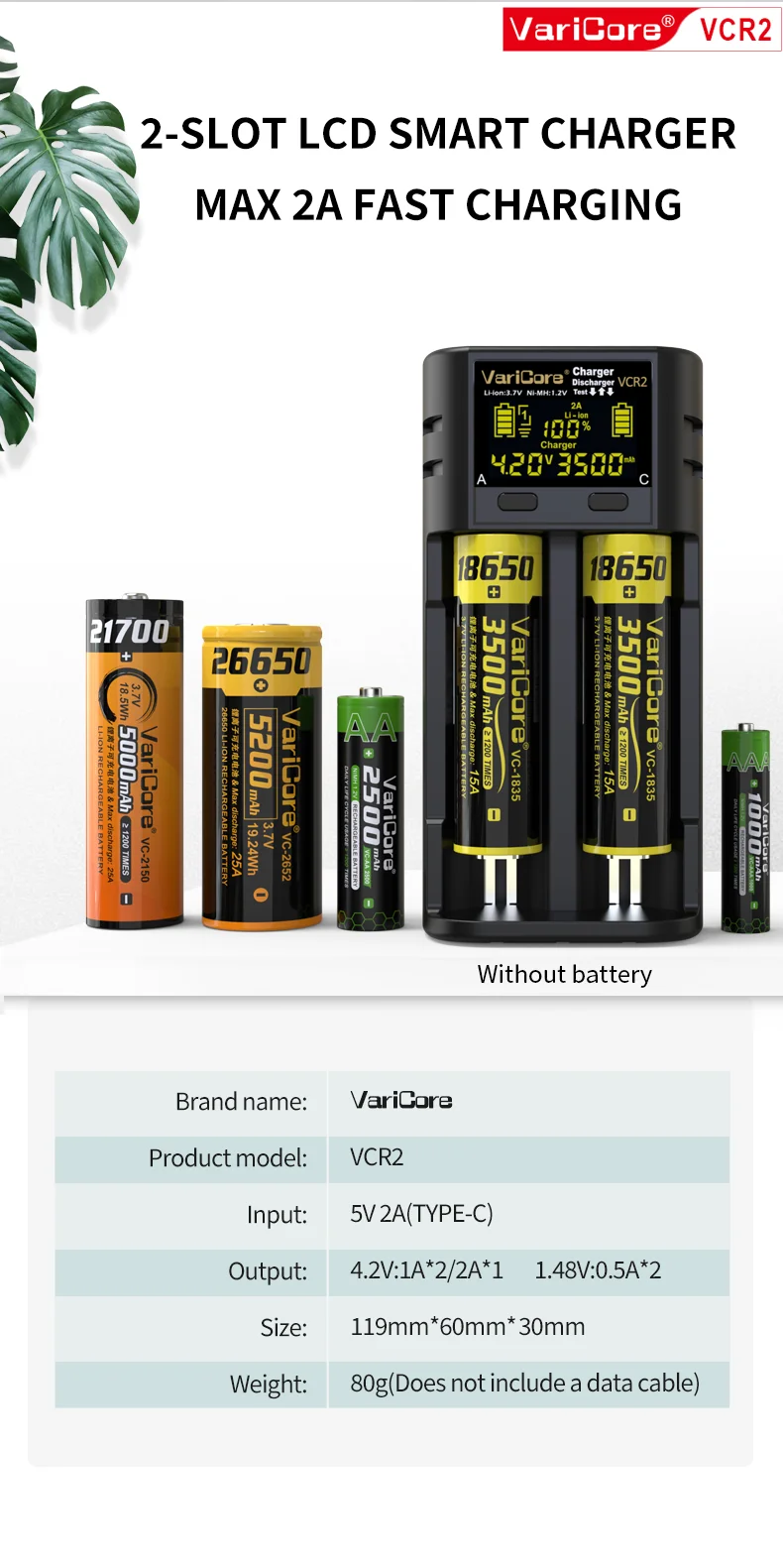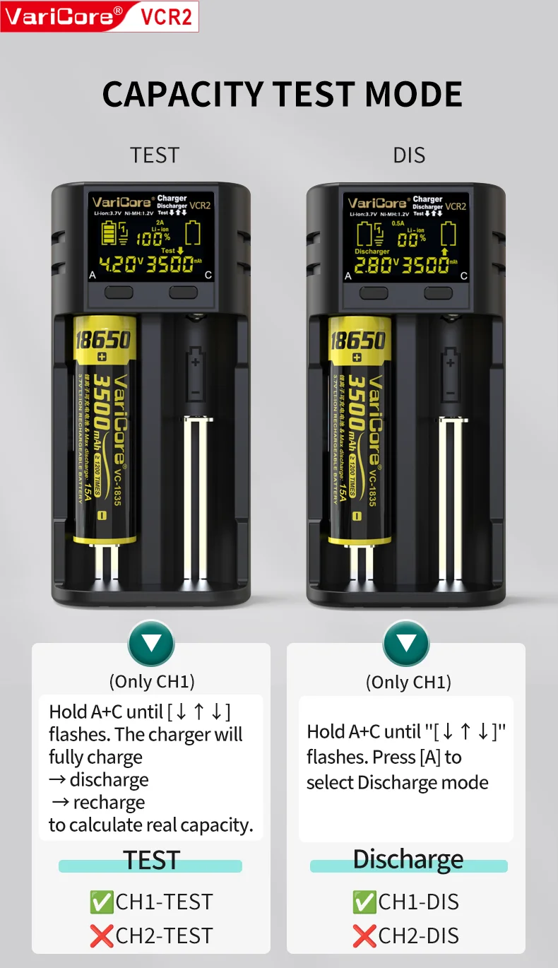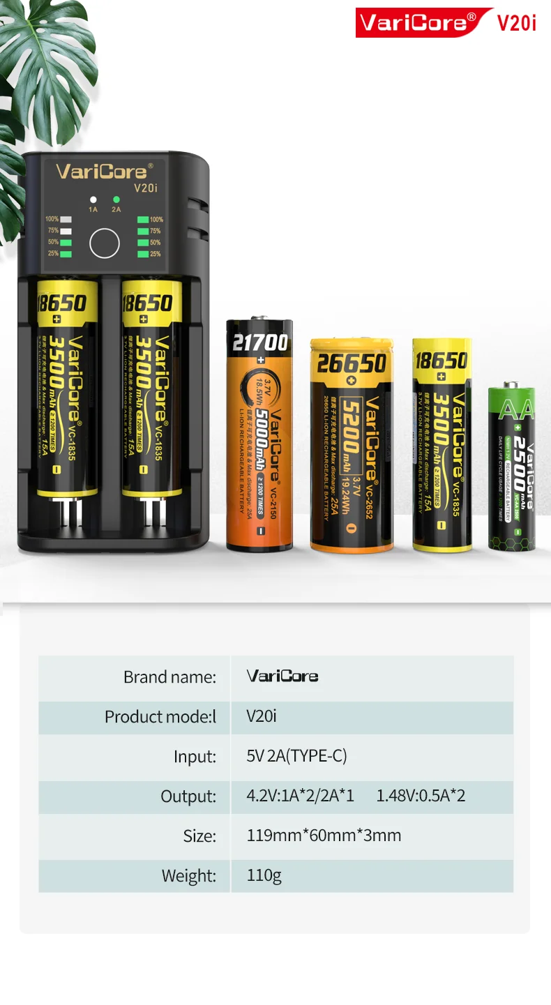 VCQ4 TC2 R4 Intelligent Battery Charger Portable for 3.7V Lithium 18650 26650 21700 18500 18350 1.2V NI-MH Ni-Cd AA AAA
